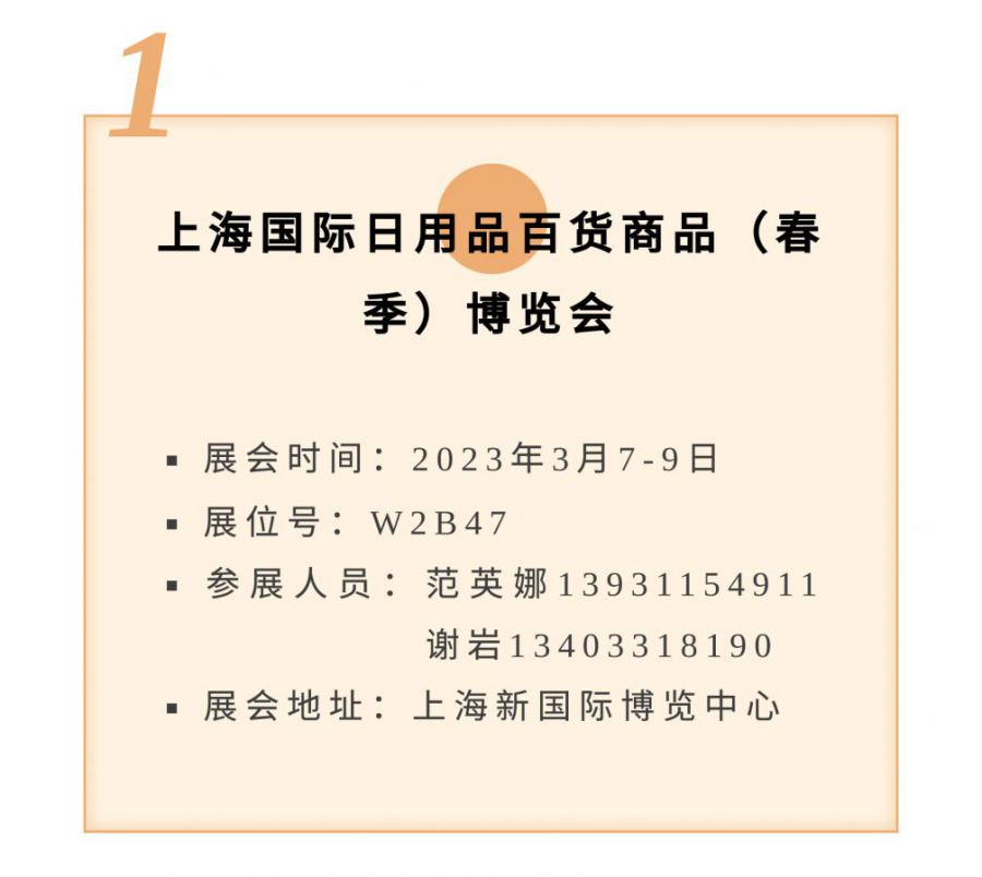 叮咚丨新樂華寶塑料制品有限公司3月份展會(huì)速遞 上一個(gè):廣交世界,互利天下,新樂華寶塑料制品二期展位號(hào):浴室用品16.2H30 /家居用品15.2B16-17 下一個(gè):2023年日本東京(春季)國際消費(fèi)品及禮品博覽會(huì)